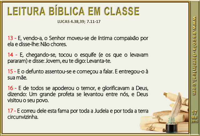 Ao curar os doentes e dar vida aos mortos, o Senhor Jesus mostrou o seu poder sobre o pecado e suas consequências. As pessoas que presenciavam o Filho do Homem realizar sinais e maravilhas exclamavam admiradas: "Deus visitou o seu povo" (Lc 7.16). Deus visitou um povo esquecido, sofredor, carente, oprimido e sem esperanças! Sim, o Verbo havia se tornado carne para participar dos sofrimentos humanos. Ele tem poder para curar as doenças físicas e espirituais da humanidade (Lc 9.11).