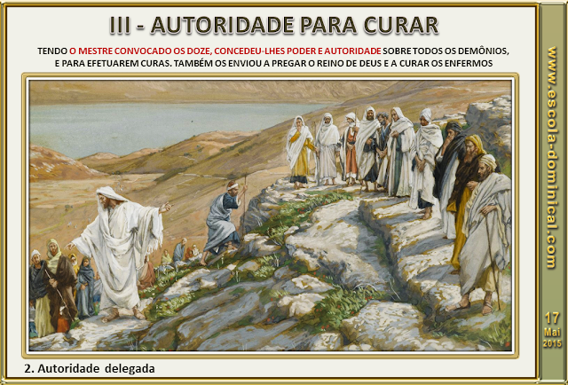 2. Autoridade delegada. Se por um lado Jesus é capacitado pelo Espírito Santo para realizar milagres, por outro, Ele dá esse mesmo poder aos seus discípulos. Tendo o Mestre convocado os Doze, concedeu-lhes poder e autoridade sobre todos os demônios, e para efetuarem curas. Também os enviou a pregar o Reino de Deus e a curar os enfermos (Lc 9.1,2). Aquilo que Jesus começou a fazer pelo poder do Espírito Santo teria continuidade através de seus seguidores. O Senhor delegou à Igreja o mesmo poder que estava sobre si (Lc 9.1,2; 10.9,18,19; At 1.8; 4.8; 13.9). Dessa forma a Igreja estaria capacitada a cumprir a sua missão. Quando a Igreja negligencia a Terceira Pessoa da Trindade, perde não somente o seu foco, mas também a sua identidade.