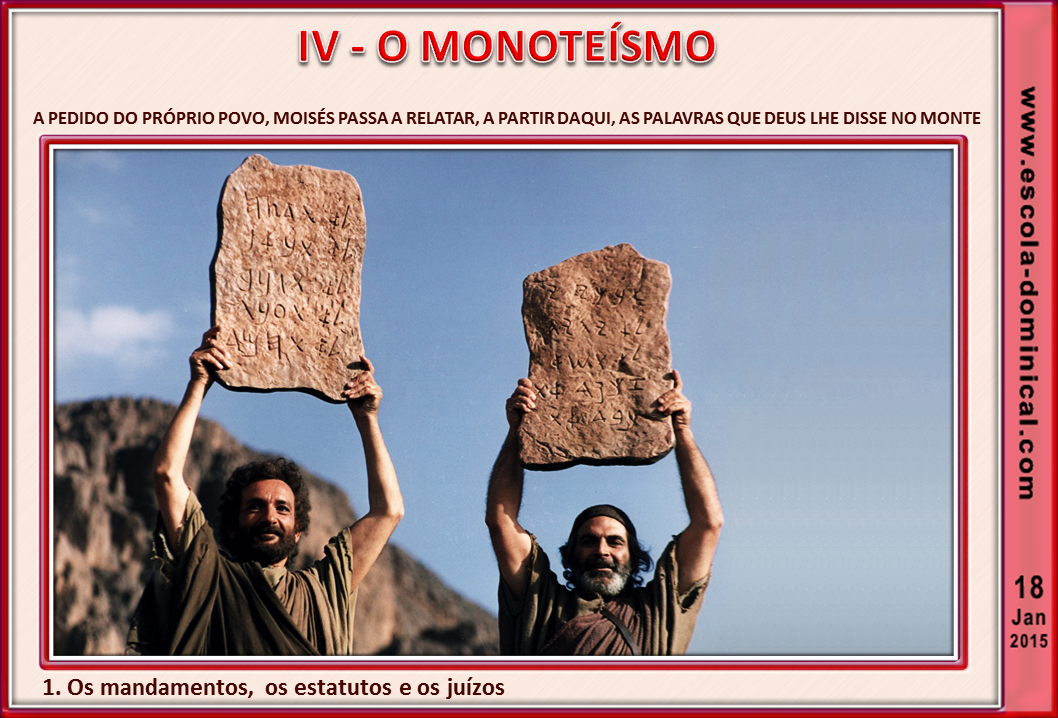 1. Os mandamentos, os estatutos e os juízos. Essas palavras denotam toda a lei do concerto (Dt 6.1, 2). A pedido do próprio povo, Moisés passa a relatar, a partir daqui, as palavras que Deus lhe disse no monte (Dt 5.27-31). A ordem aqui tem por objetivo estreitar a relação de Deus com os filhos de Israel quando entrarem na Terra Prometida. O povo precisava ser instruído para viver em obediência e no temor de Jeová, e assim possuir a terra dos cananeus por herança (Dt 4.1).